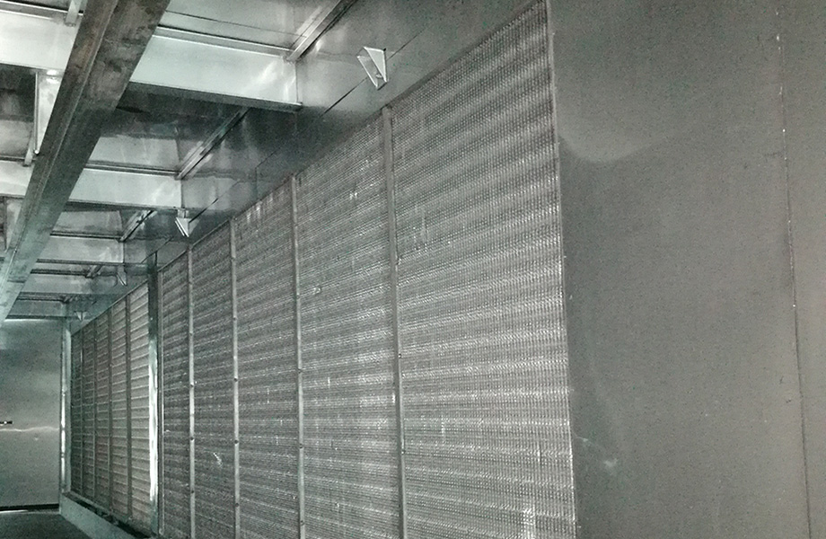 技術(shù)實(shí)現(xiàn)形式:制冷系統(tǒng)采用3臺復(fù)盛SDL系列單機(jī)雙級螺桿制冷機(jī)組,冷凝器采用寶豐蒸發(fā)式冷凝器,膨脹閥供液,油路采用虹吸油冷冷卻方式,通風(fēng)導(dǎo)流板設(shè)置。蒸發(fā)器采用?25*2mm鋁管套多孔鋁片,12mm-16 mm變片距, 采用水沖霜。